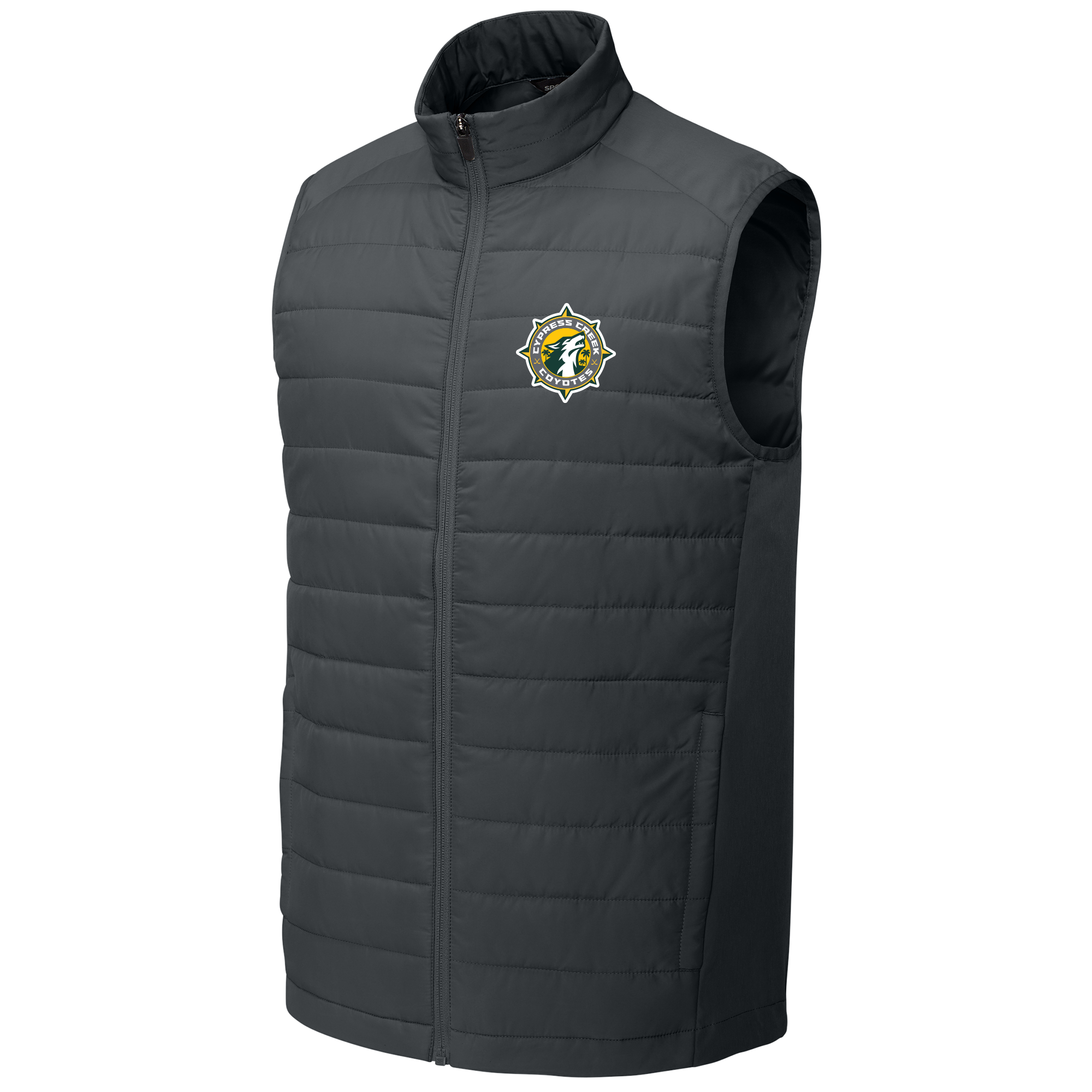This performance vest for men is constructed from two different fabrics that keep you warm while allowing a full range of motion. The team logo is durably embroidered on the left chest.