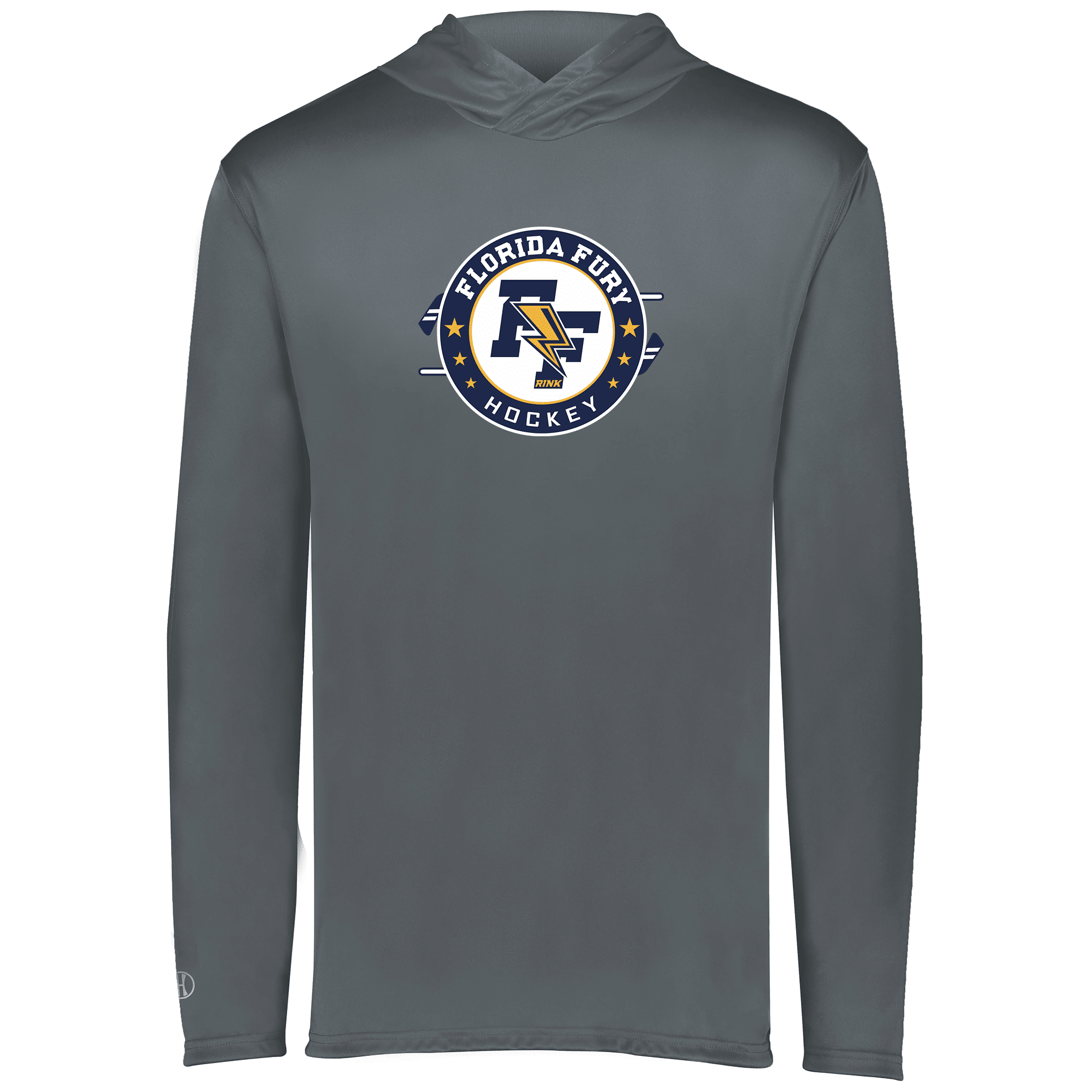 Built for active wear and true comfort on the move, this Momentum lightweight performance hoodie from Holloway combines 4-way stretch, moisture-wicking fabric, and 45+ UPF protection.