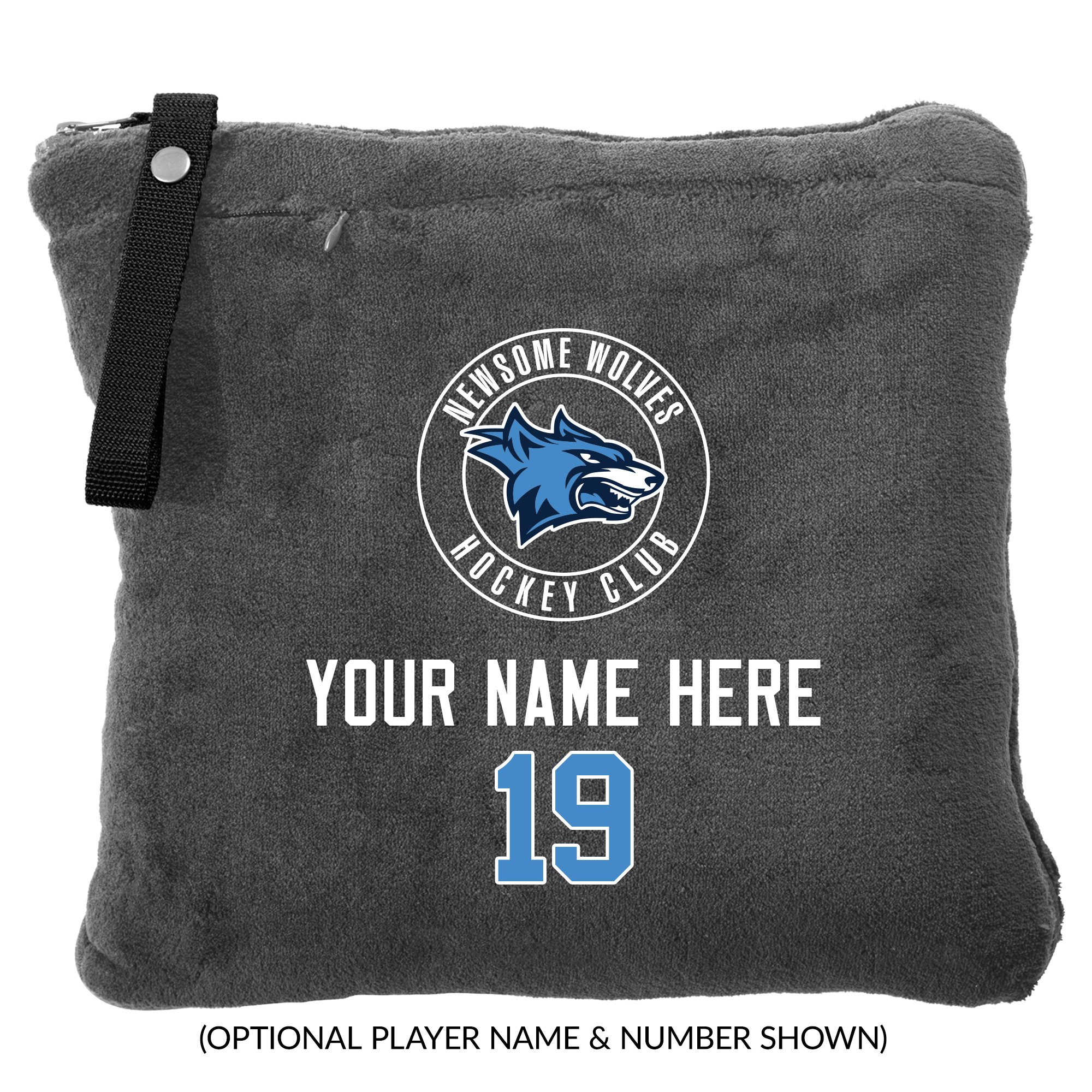 This soft travel blanket packs and zips easily into a pillow, then opens into a cozy blanket — with foot pockets! However you use it, the embroidered team logo stays visible.