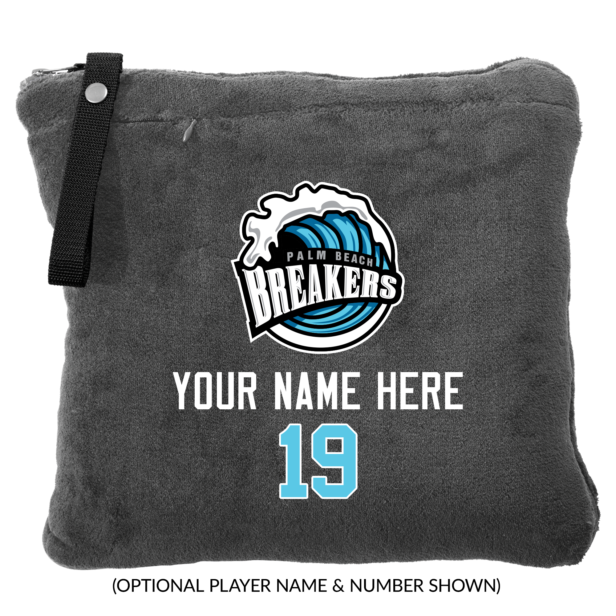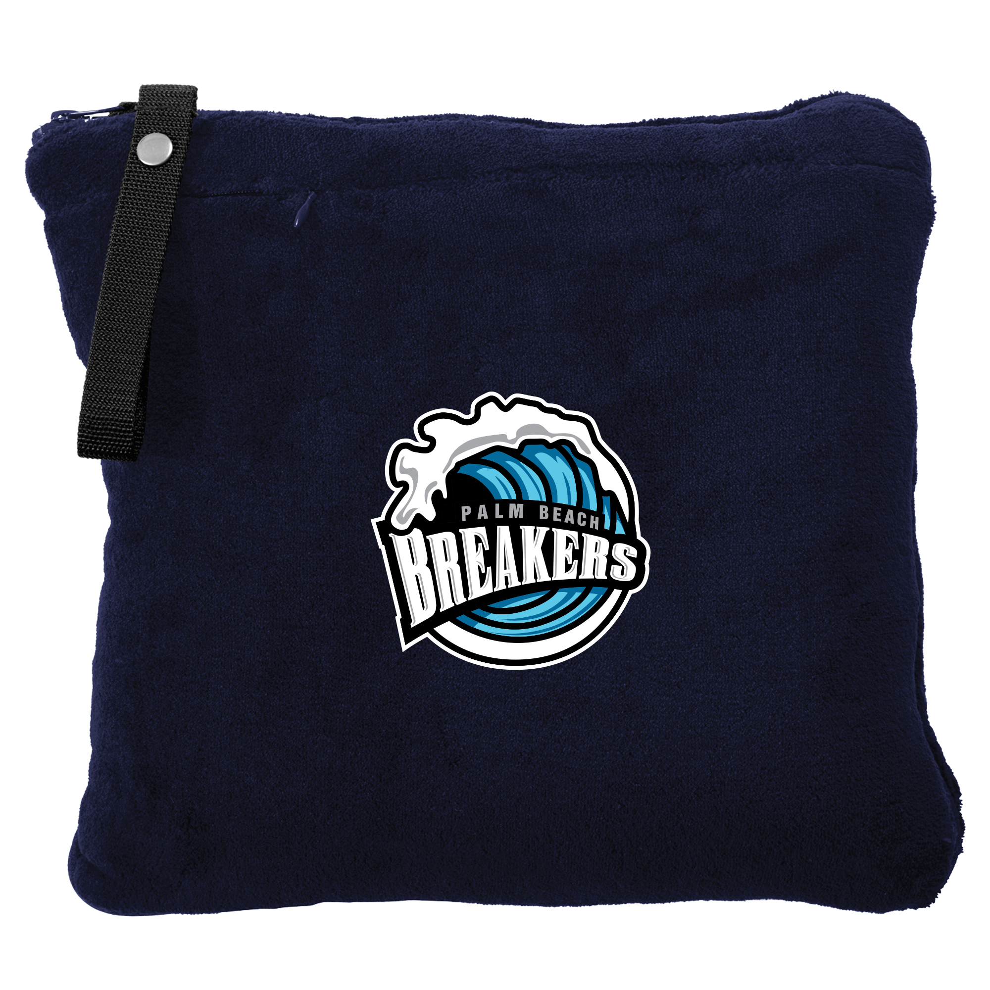 This soft travel blanket packs and zips easily into a pillow, then opens into a cozy blanket — with foot pockets! However you use it, the embroidered team logo stays visible.