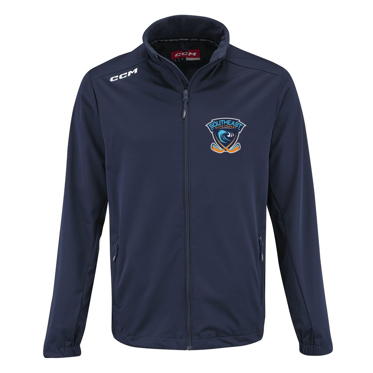 This jacket delivers both utility and adaptability, featuring zippered side pockets, an elasticated hem and cuffs, and strategically placed interior zippers for straightforward customization. The 100% polyester shell, complemented by the embroidered CCM logo and ID label, presents a polished, professional appearance ideal for athletes seeking style and functionality.