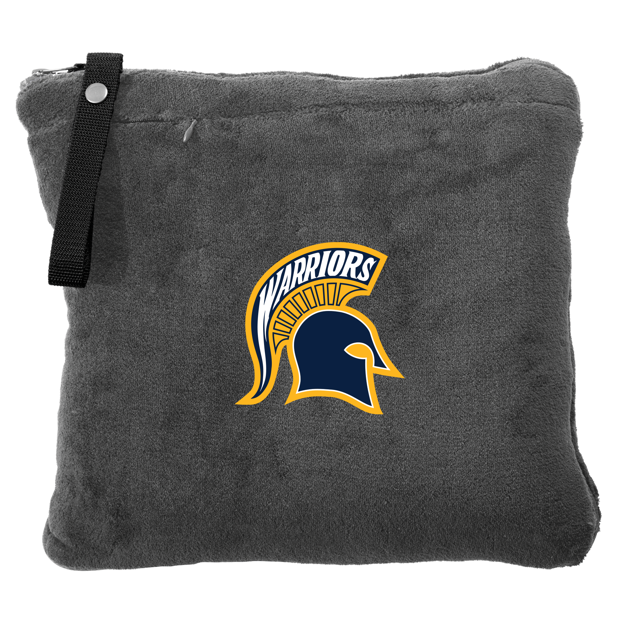 Note: If you choose not to personalize your blanket, the team logo will be vertically and horizontally centered on the pillow area. See photos.