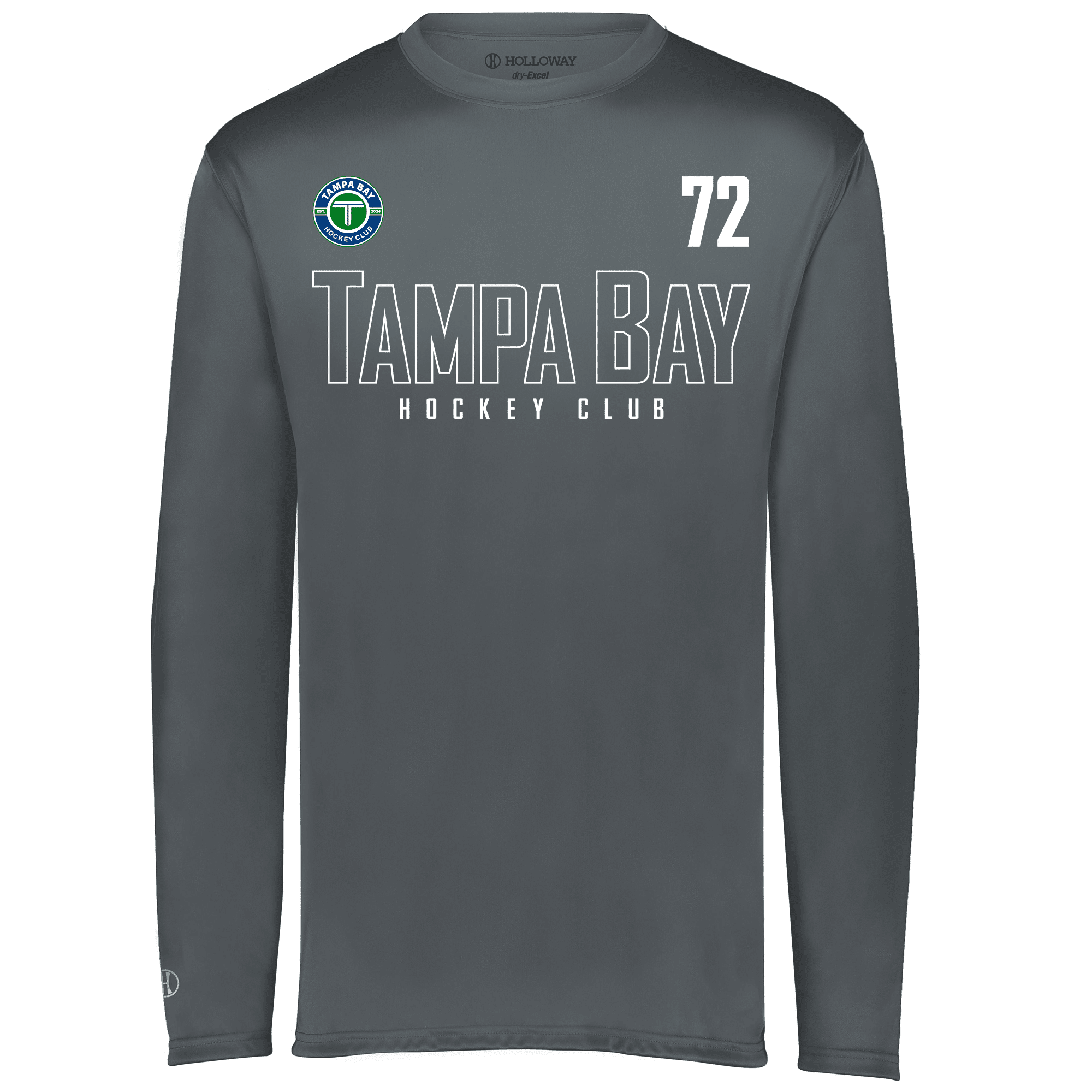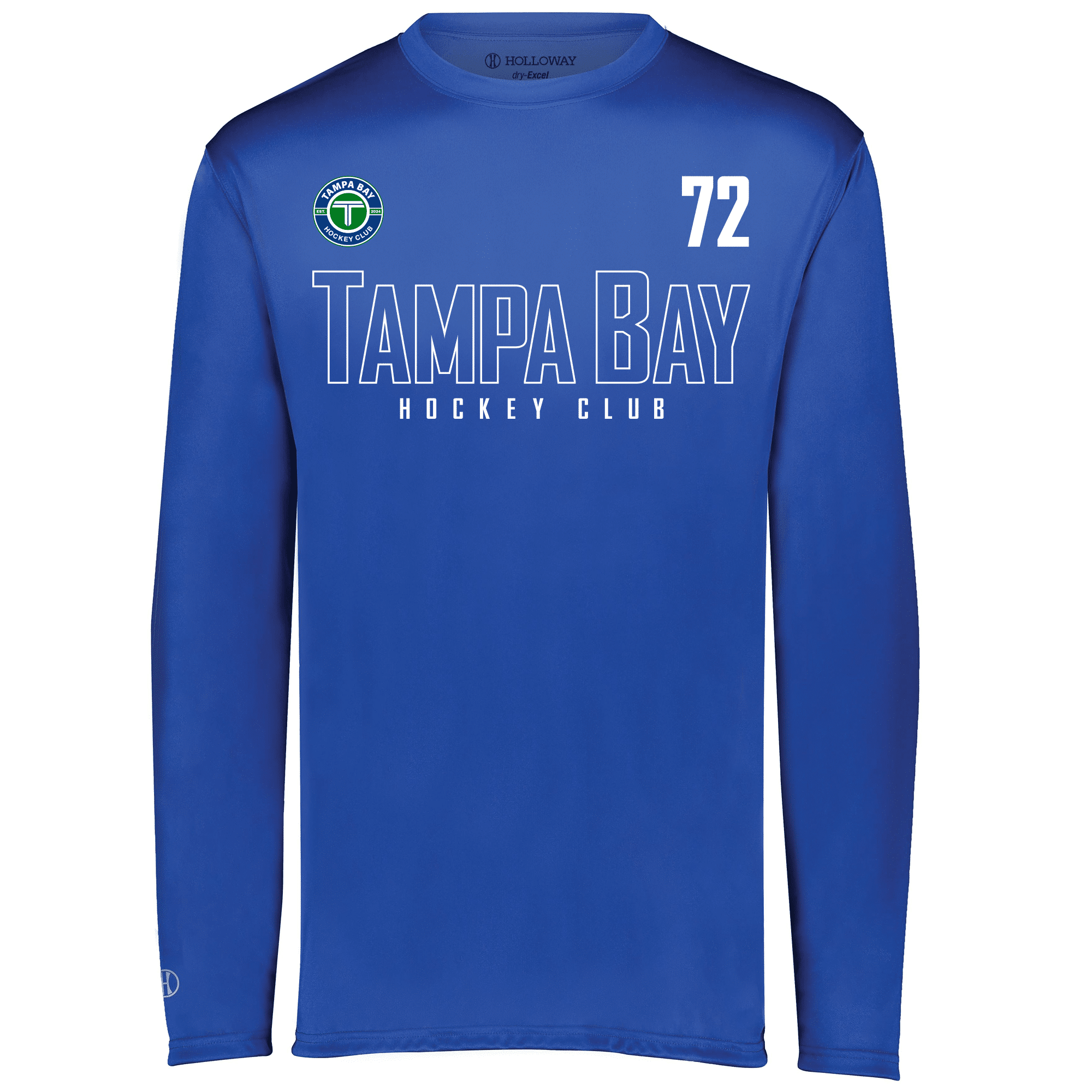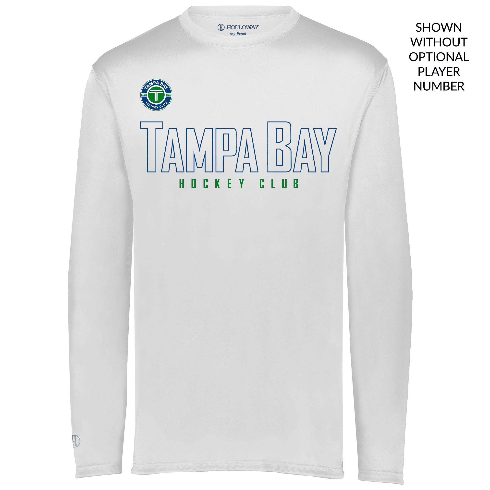 Features the brand-new Tampa Bay Hockey Club “hollow” logo — only from Rinkside Sports! “Hollow” letters on the words “TAMPA BAY” use less ink, helping the garment breathe better. The optional player number is included at no charge.